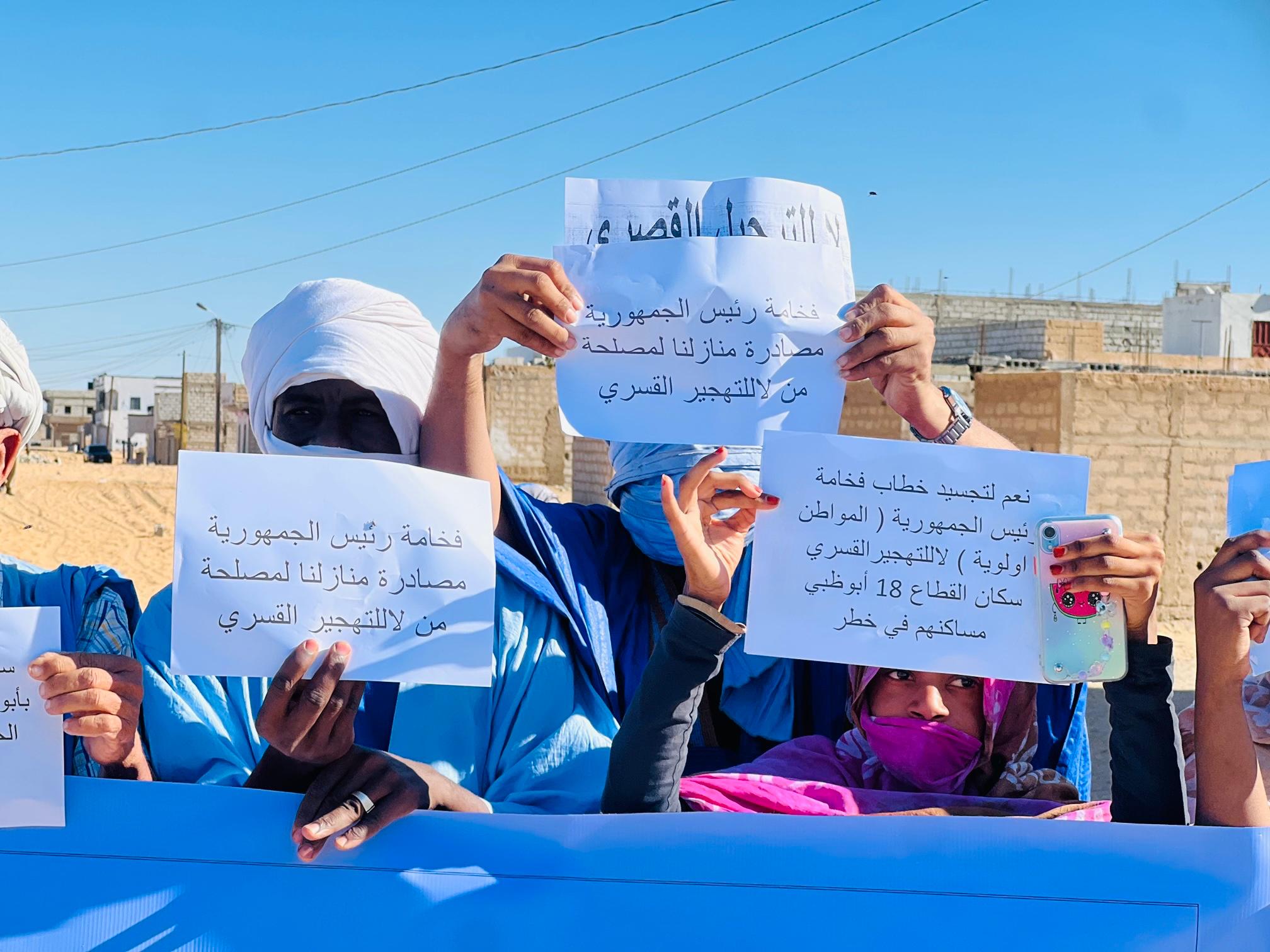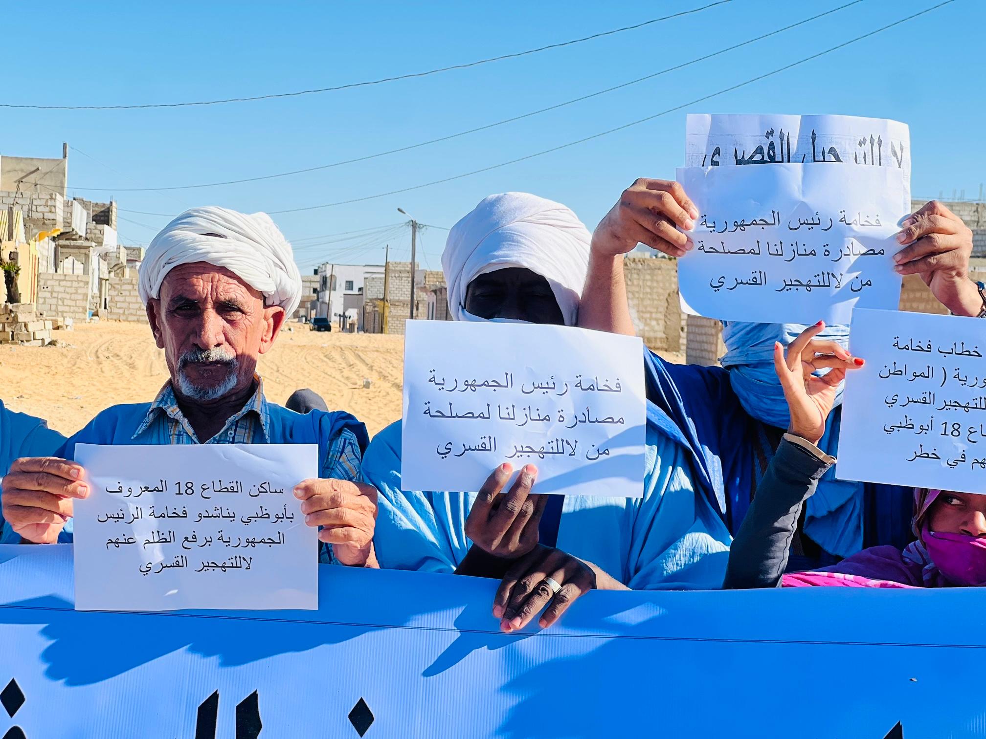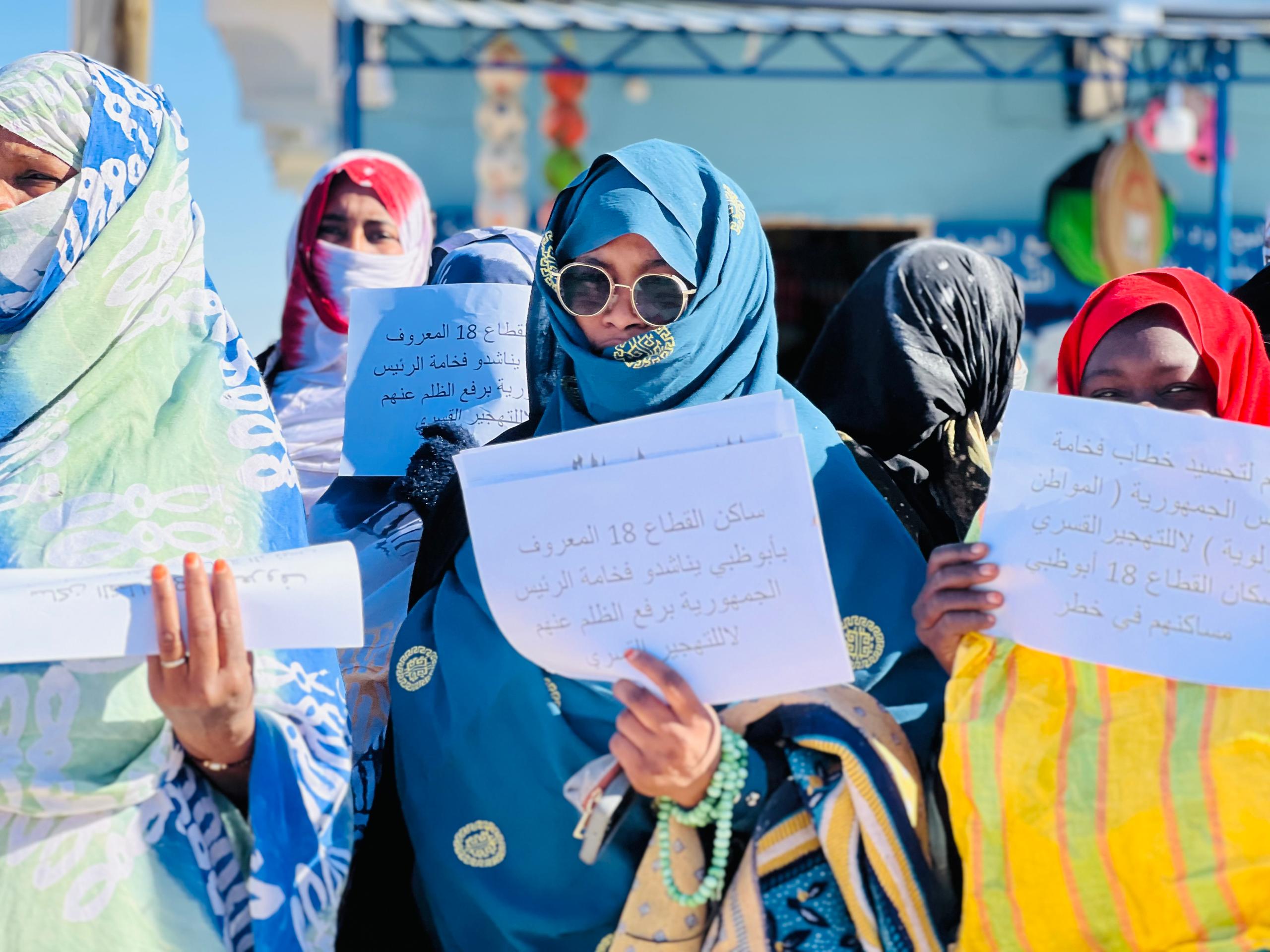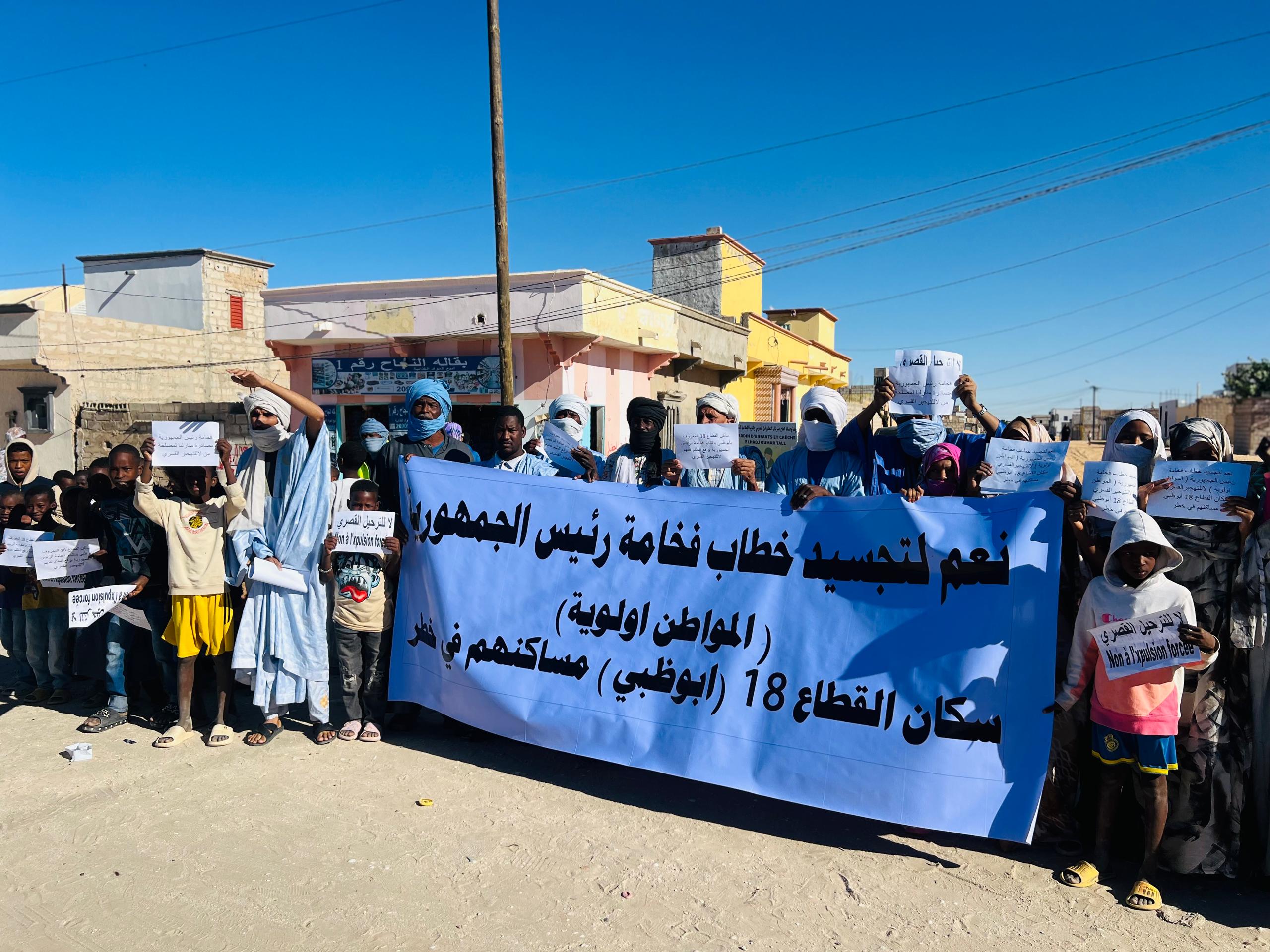 نظم عدد من سكان حي ترحيل أبوظبي 18، التابع لمقاطعة الرياض بولاية نواكشوط الجنوبية، اليوم الإثنين، وقفة احتجاجية رفضا لقرار صادر عن وزارة الأملاك يقضي بترحيلهم من الحي، واصفين القرار بـ "الترحيل القسري"، ومطالبين بتدخل رئيس الجمهورية محمد ولد الغزواني، لإنصافهم.