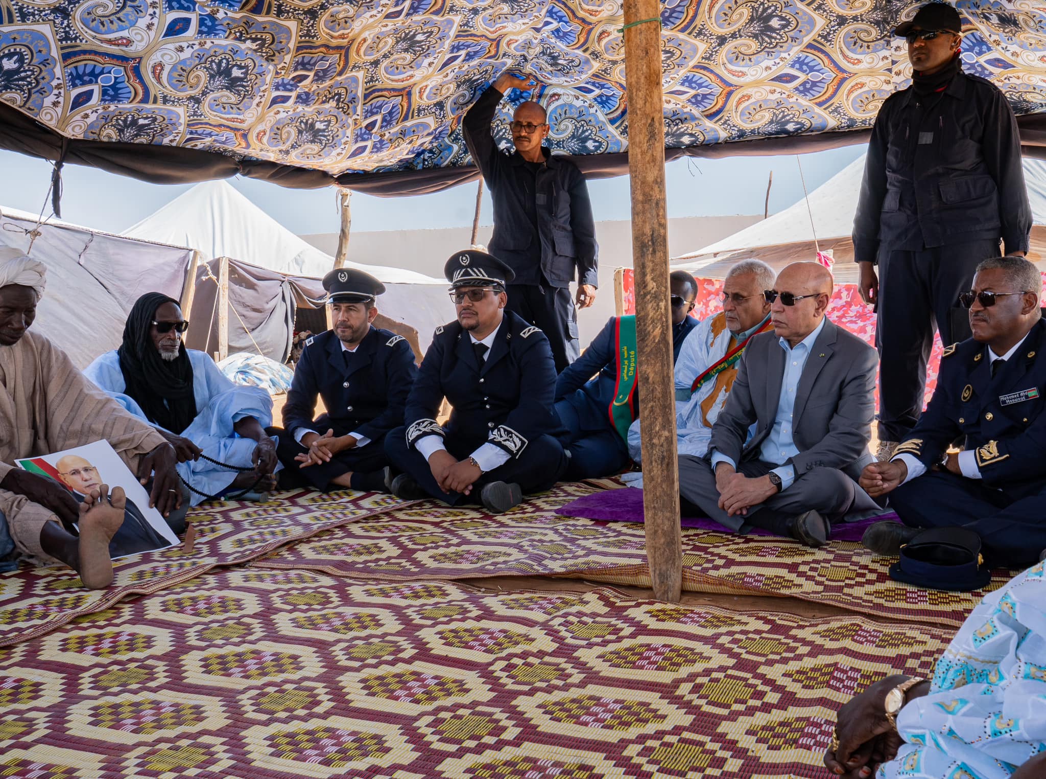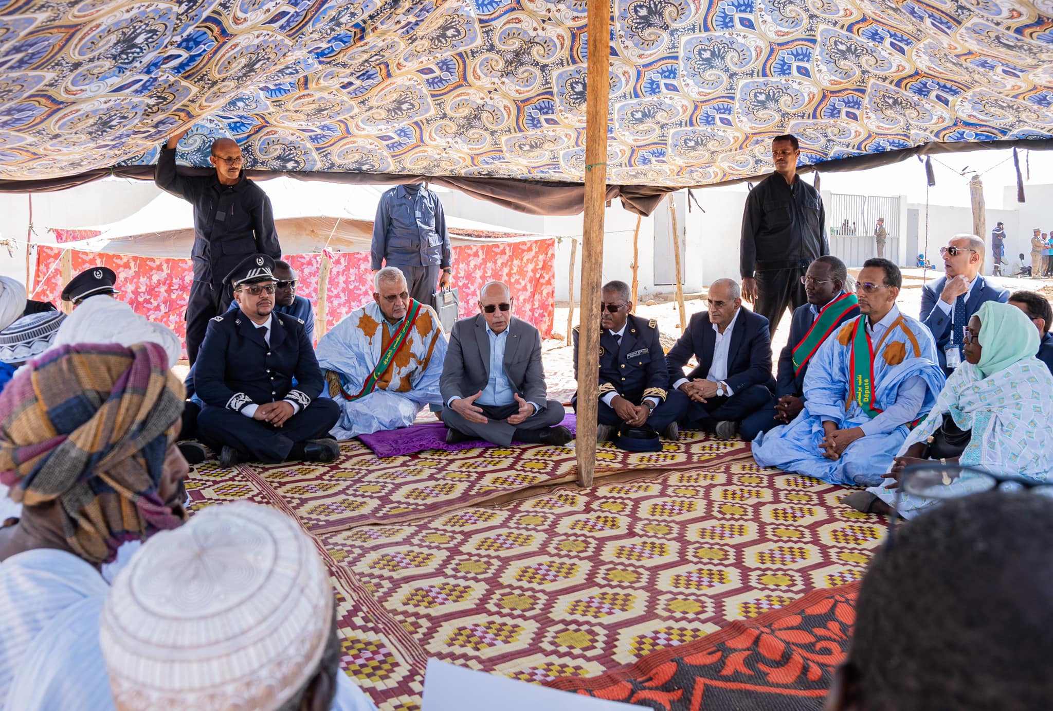 وعقد ولد الغزواني اجتماعا تحت إحدى خيام النزوح مع بعض المتضررين.