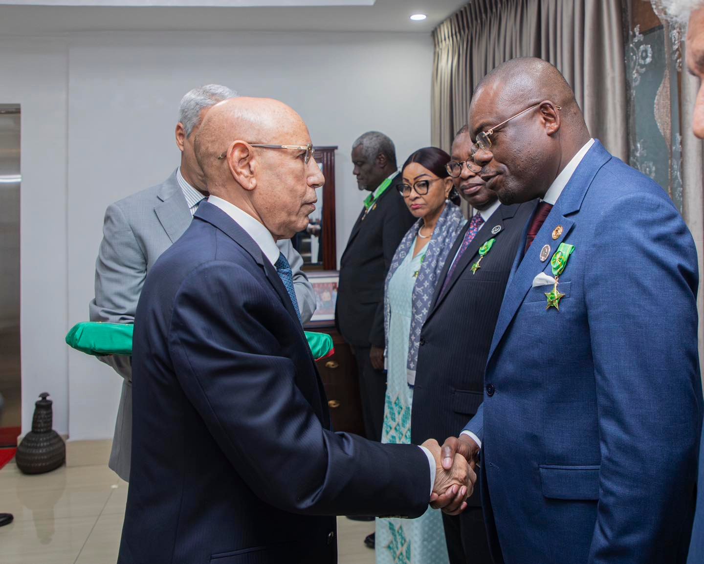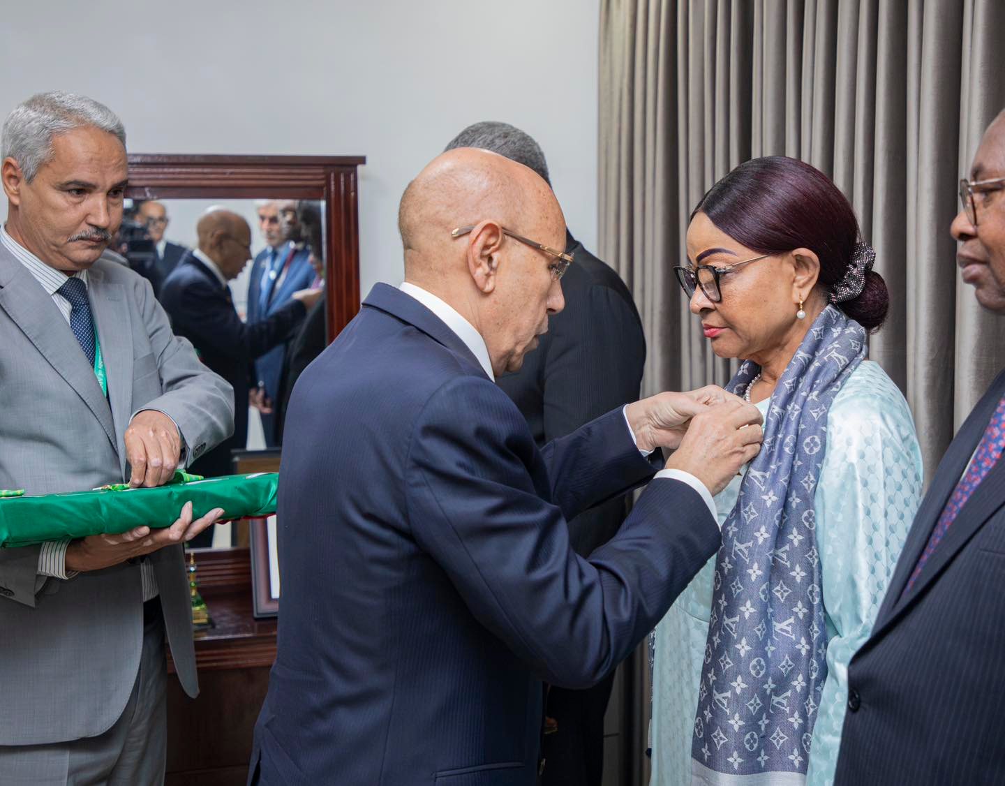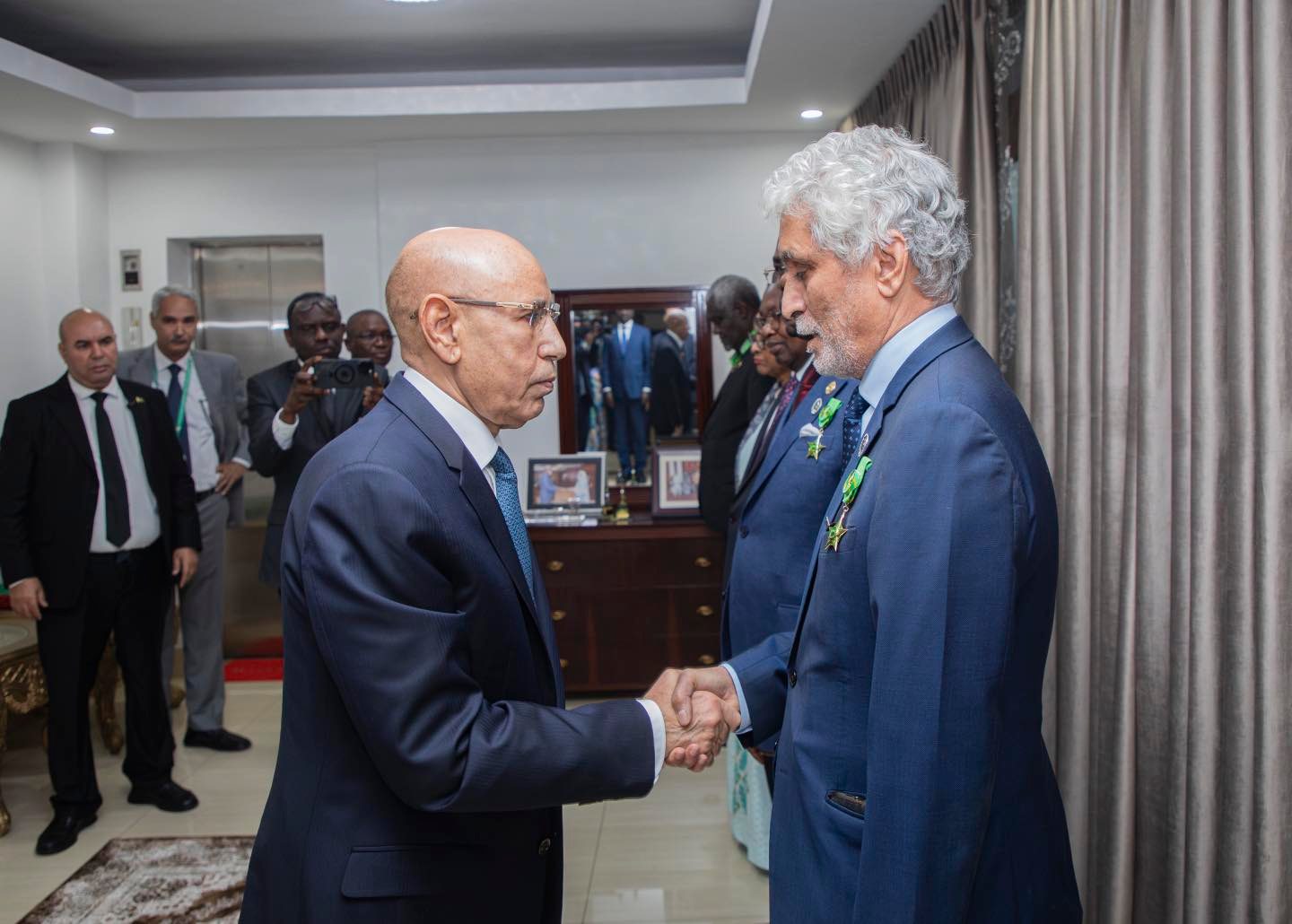 وشح رئيس الجمهورية محمد ولد الشيخ الغزواني، مساء اليوم السبت في مقر السفارة الموريتانية في أديس أبابا، رئيس مفوضية الاتحاد الإفريقي، المنتهية ولايته موسى فكي محمد، ومجموعة من كبار موظفي الاتحاد الإفريقي.