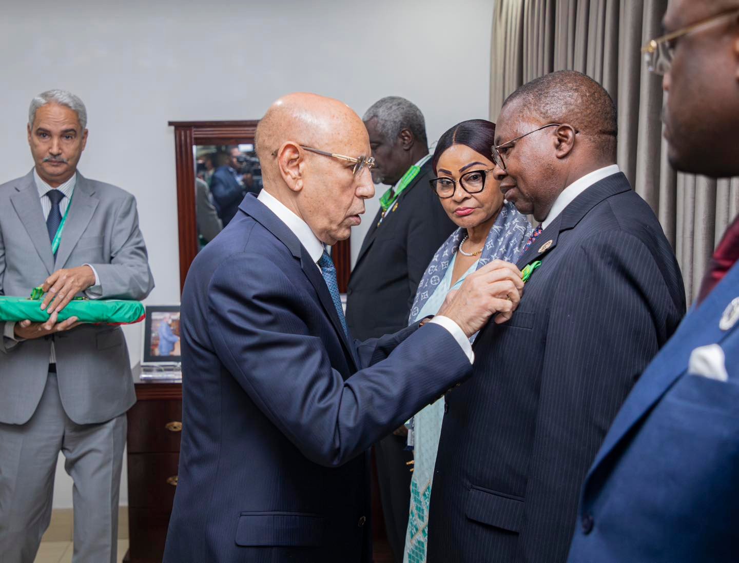 وحسب الرئاسة الموريتانية فإن هذا التوشيح يأتي "تقديرا للجهود الكبيرة التي بذلوها من أجّل افريقيا طيلة فترة توليه الرئاسة الدورية للاتحاد الإفريقي".