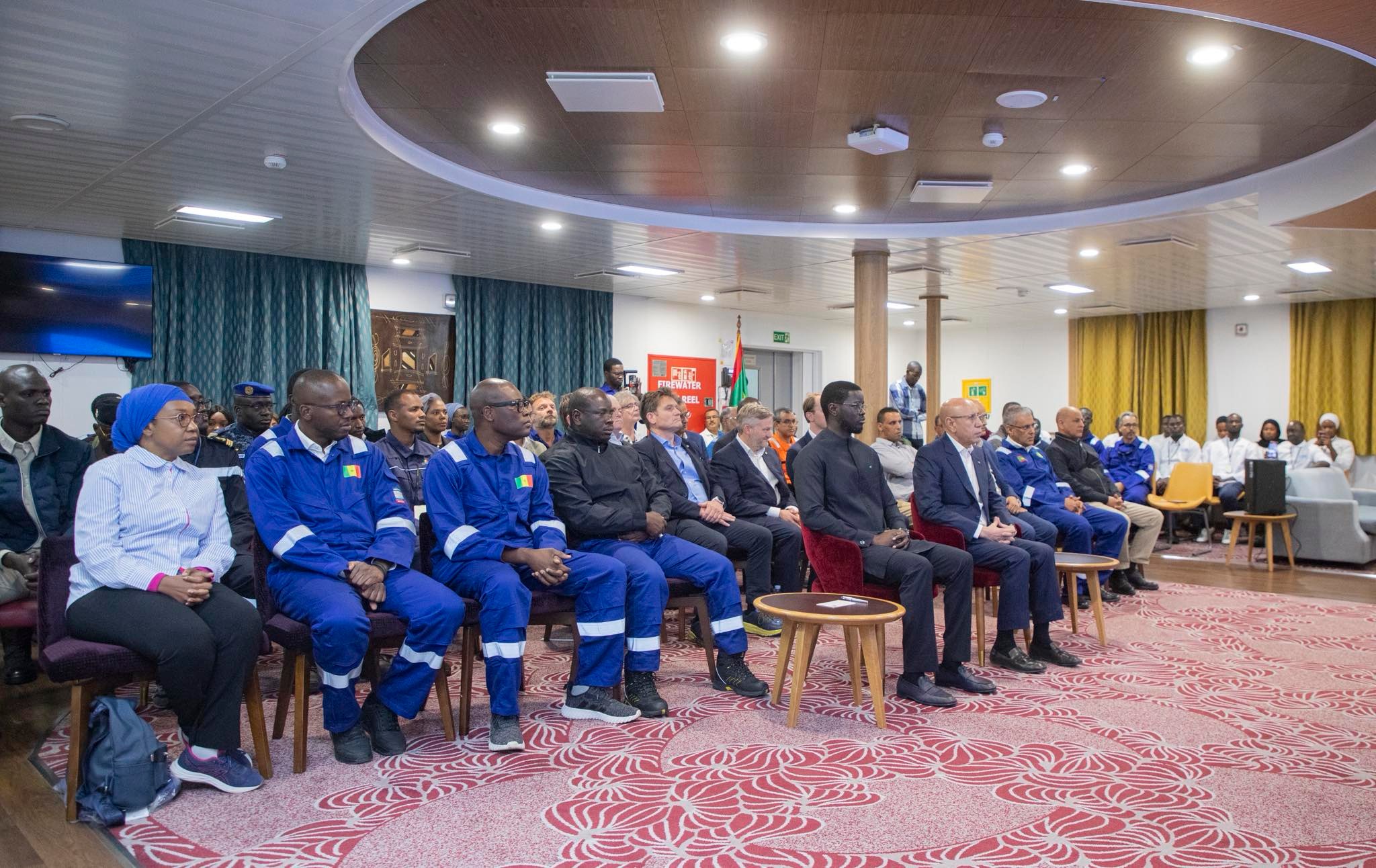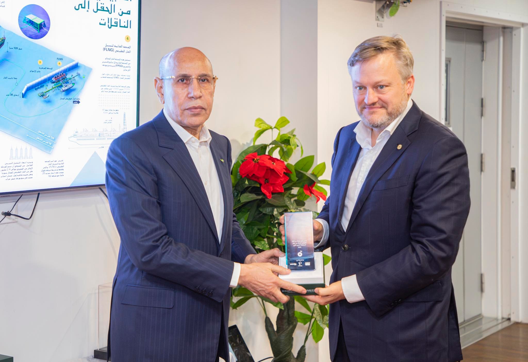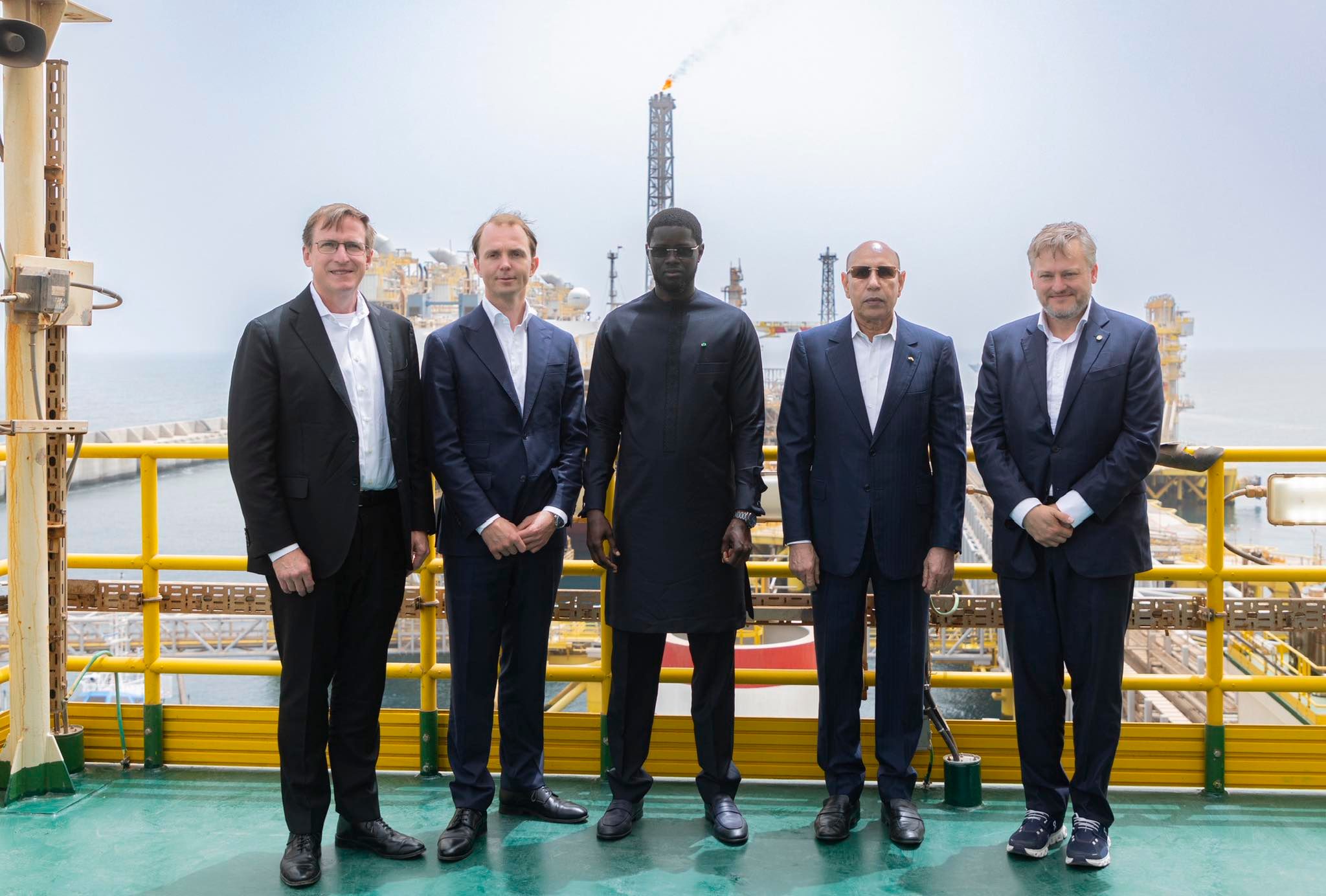 شارك رئيس الجمهورية محمد ولد الشيخ الغزواني، اليوم الخميس، رفقة نظيره السنغالي باسيرو دوماي فاي، من على المنصة العائمة لتسييل الغاز الطبيعي FLNG، بمنطقة حقل الغاز السلحفاة آحميم الكبير بعرض البحر، في حفل تدشين عمليات تصدير الغاز الطبيعي المسال (LNG) الذي بدأ منذ أبريل الماضي.