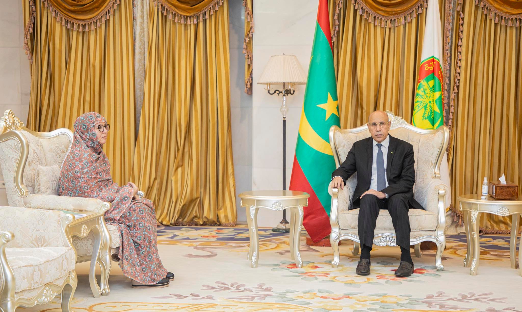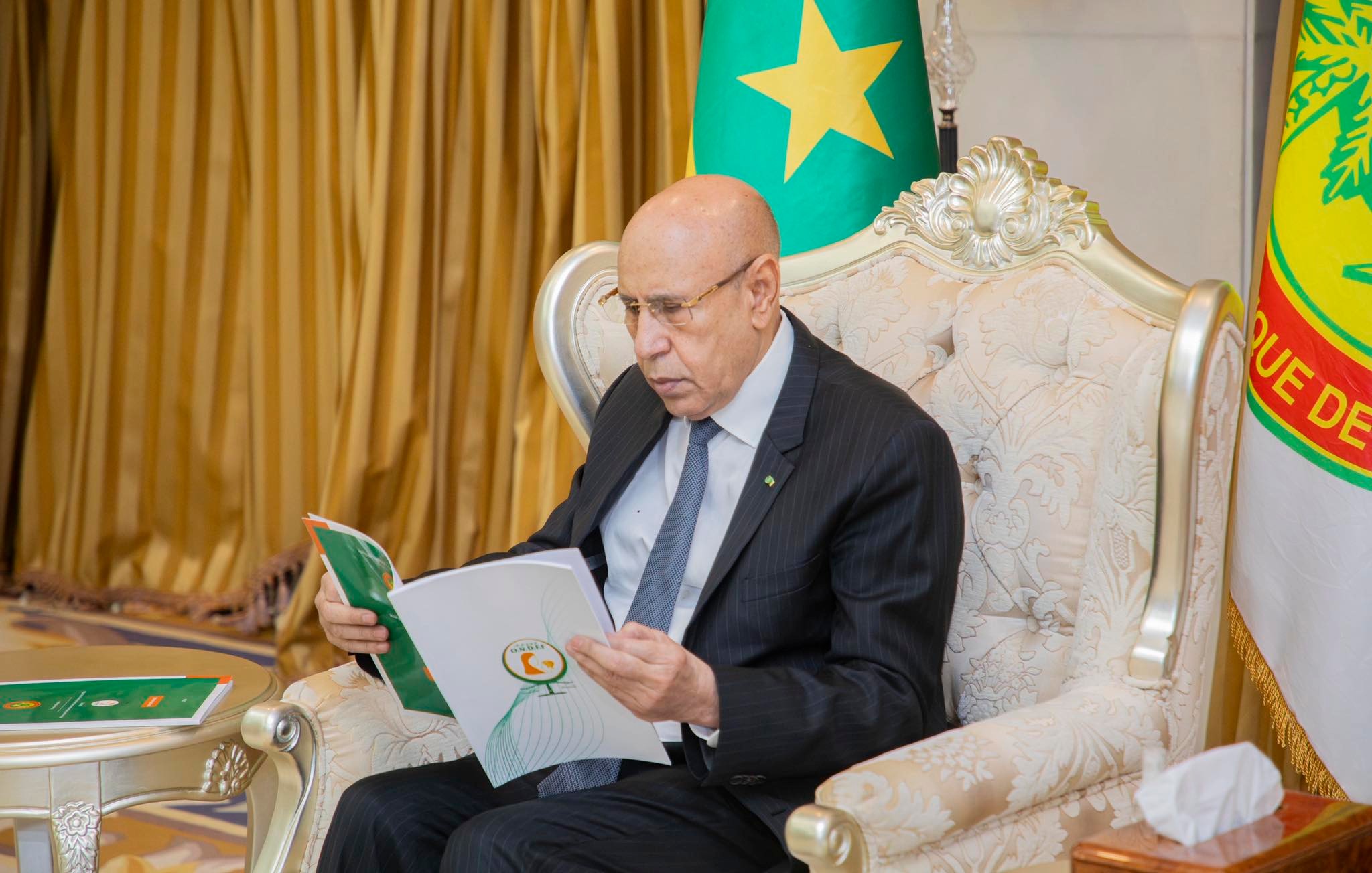 تسلم رئيس الجمهورية محمد ولد الشيخ الغزواني، اليوم الاثنين بالقصر الرئاسي في نواكشوط، التقرير السنوي للمرصد الوطني لحقوق المرأة والفتاة، خلال استقبال رئيسة المرصد الوطني لحقوق المرأة والفتاة مهلة أحمد طالبنا.