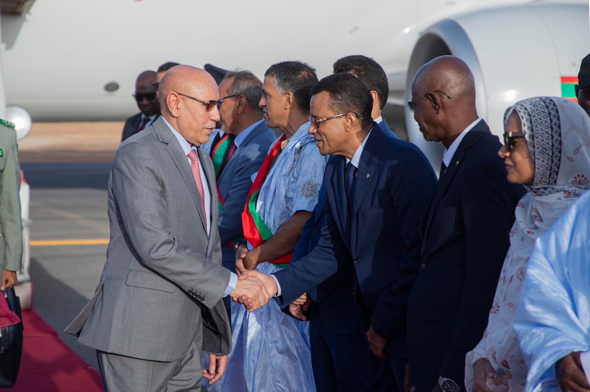 استقبال شعبي ورسمي لرئيس الجمهورية لحظة وصوله إلى مدينة نواذيبو
