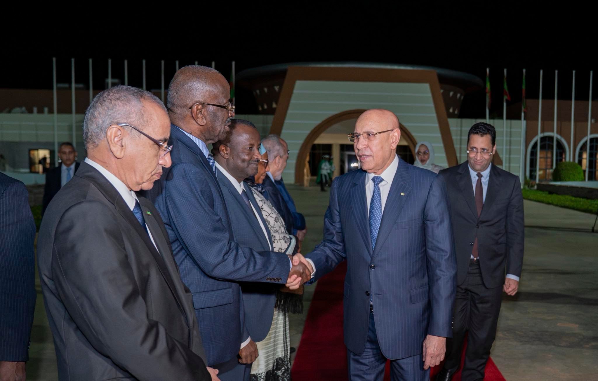 وأجريت لرئيس الجمهورية مراسم وداع رسمية في مطار نواكشوط الدولي، حيث كان في مقدمة مودعيه الوزير الأول المختار ولد أجاي، إلى جانب الوزير الأمين العام لرئاسة الجمهورية مولاي ولد محمد لغظف، وعدد من الوزراء والمستشارين في رئاسة الجمهورية، من بينهم وزير العدل، ووزير الشؤون الخارجية، ووزير الداخلية، إضافة إلى قائد الأركان الخاصة للرئيس، وعدد من الشخصيات المدنية والعسكرية.