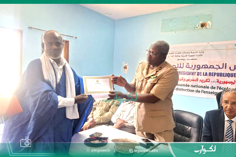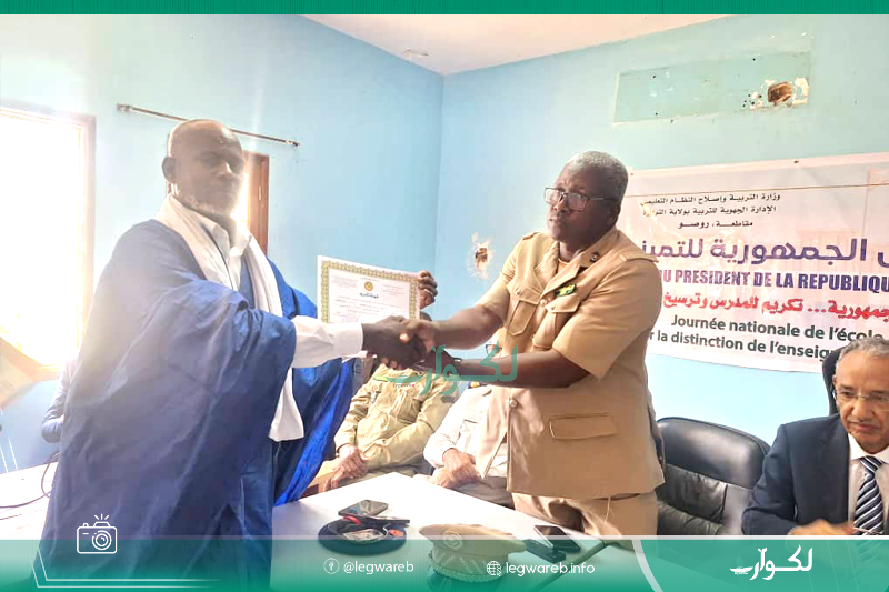 وشهد الحفل تكريم عدد من أفراد الأسرة التربوية، حيث منح كل مكرم مبلغ 500 ألف أوقية قديمة في إطار جائزة التميز التي أقرها رئيس الجمهورية "دعما للكفاءات التعليمية وتشجيعا للعطاء المهني".