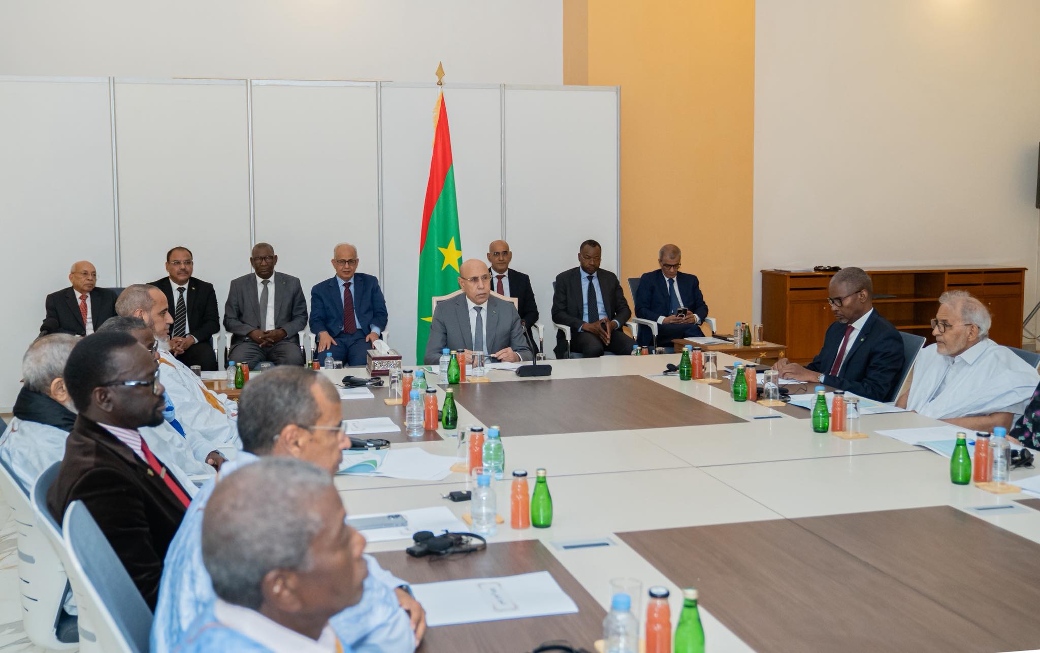 وحضر الاجتماع، إلى جانب الرئيس، كل من الوزير الأمين العام لرئاسة الجمهورية مولاي ولد محمد الأغظف، والوزير المكلف بالديوان الرئاسي الناني ولد اشروقه، وأحد المستشارين الرئاسيين، إضافة إلى منسق الحوار.