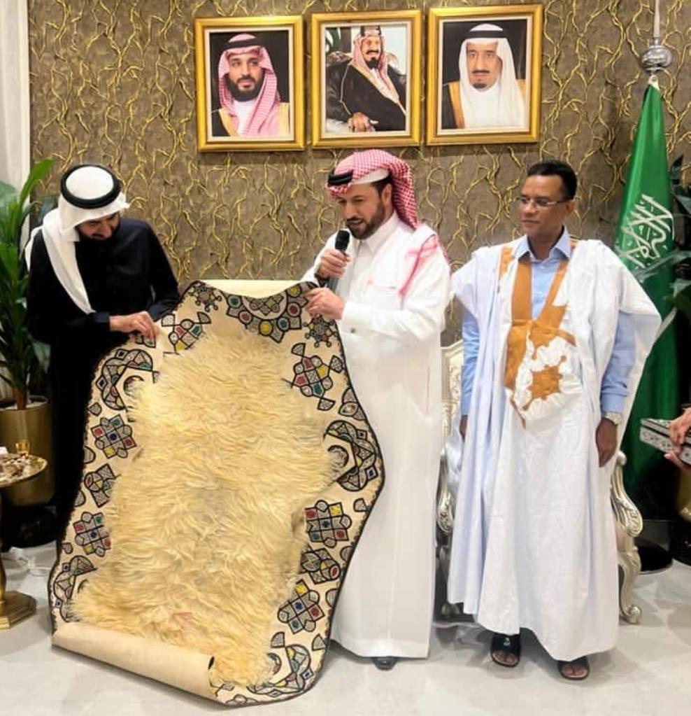 وخلال الحفل، قدّم السفير السعودي هدايا تذكارية مستوحاة من الصناعة التقليدية الموريتانية للوزير، شملت بساطا جلديا تقليديا وسيفا فاخرا، في لفتة تعكس عمق الروابط الثقافية بين البلدين.
