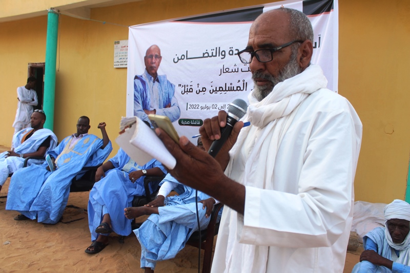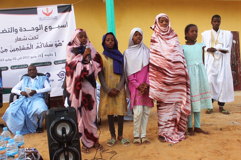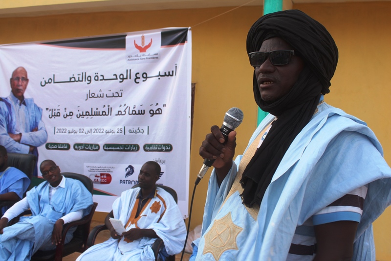 وفي كلمة له بمناسبة انطلاق فعاليات "أسبوع الوحدة والتضامن" قال رئيس جمعية مساعدة بلا حدود أعل الشيخ ولد محمد لعلي ولد أسويدين، إنه يأمل أن يكون هذا الأسبوع بداية خير ووحدة وتضامن في المنطقة الثرية بتنوعها وتآخي ساكنتها رغم اختلاف الألوان والألسن.