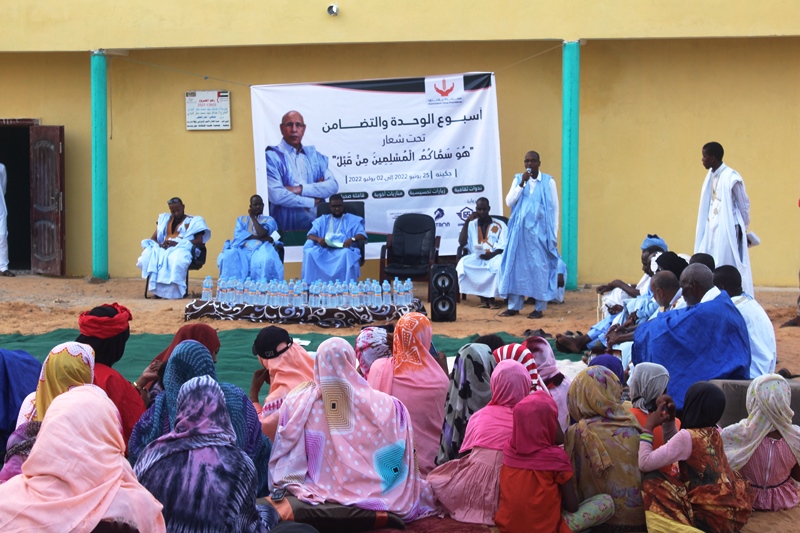 وأشار إلى أن الأسبوع سيشهد تنظيم ندوات هامة، ولقاءات أخوية، ومباريات، وقافلة صحية، مضيفا أنها "كلها أنشطة يسعون من خلالها لتكريس الوحدة من أجل موريتانيا قوية موحدة ومتصالحة مع ذاتها".