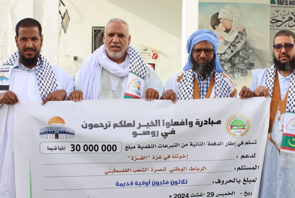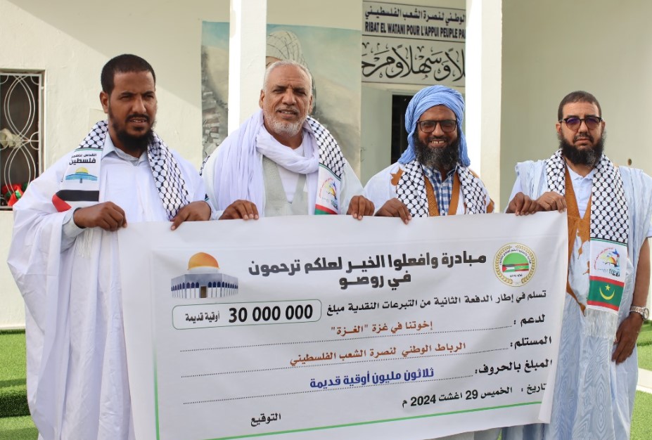 وتم تسليم المبلغ لرئيس الرباط الوطني لنصرة الشعب الفلسطيني الشيخاني ولد بيب.